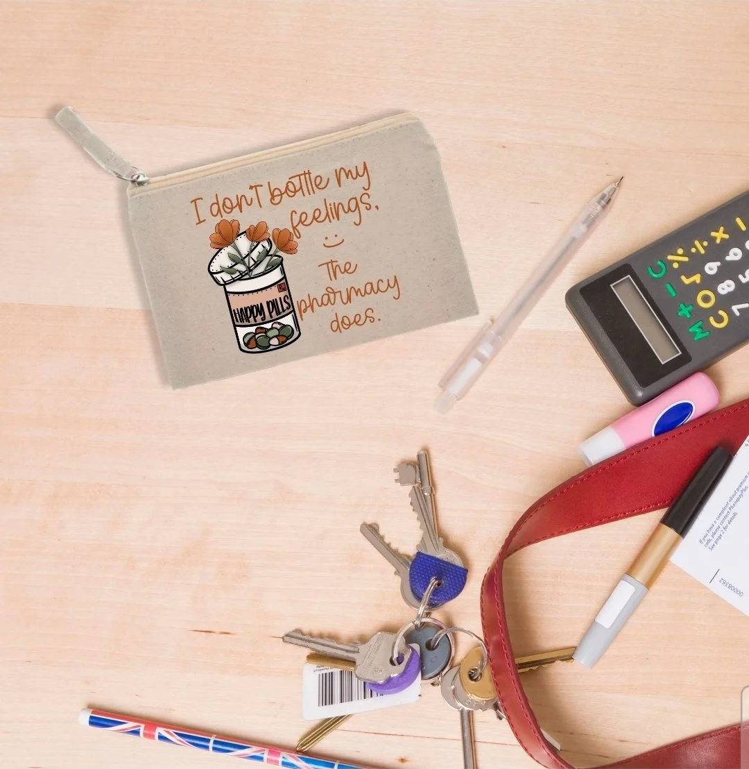 Image 1 of 1 Pill Pouch $5.00 Don’t like to carry around a large pill container. Our small reusable pill pouch with fun design might be what you need. Add To Cart Added! Don’t like to carry around a large pill container. Our small reusable pill pouch with fun design might be what you need.